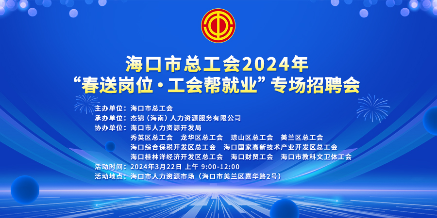 6月24日上午9時(shí)-12時(shí),由海口市龍華區(qū)人力資源和社會(huì)保障局、海口市(龍華)人力資源服務(wù)產(chǎn)業(yè)園主辦,杰...